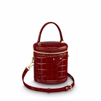 15 x 15 x 17 cm (Longueur x Hauteur x Largeur) Rouge Carmin Cuir d'alligator brillant Garniture en cuir d'alligator brillant Doublure en cuir de ch*vre Finitions métalliques dorées Fermeture à glissi*re Poignée permettant un porté à la main ou au coude Bandouli*re de sac ajustable et amovible permettant un porté à l'épaule ou croisé : longueur de 48 cm à 53 cm