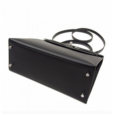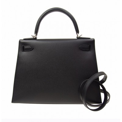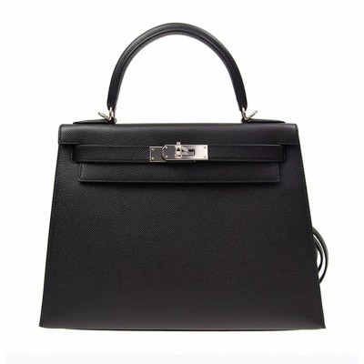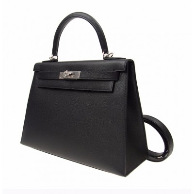 【包邮包税】Hermès 爱马仕 KELLY 28 女士黑色银扣单肩包手提包