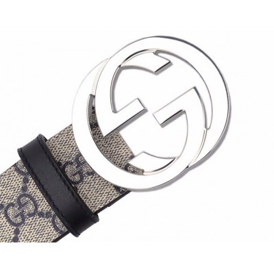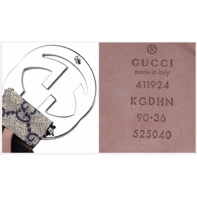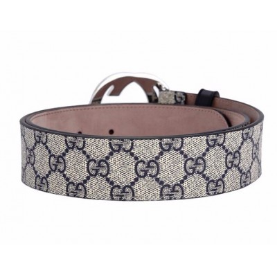 【情人节礼物】GUCCI/古驰 男士银色双G头互扣式腰带人造革蓝色印花皮带 411924-KGDHN-4075