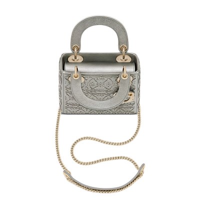首页 > > 女士包袋 > DIOR/迪奥 2020秋冬新款LADY DIOR系列 女士迷你金属色银色小牛皮刺绣珍珠单肩手提包M0505ORUH_M00E